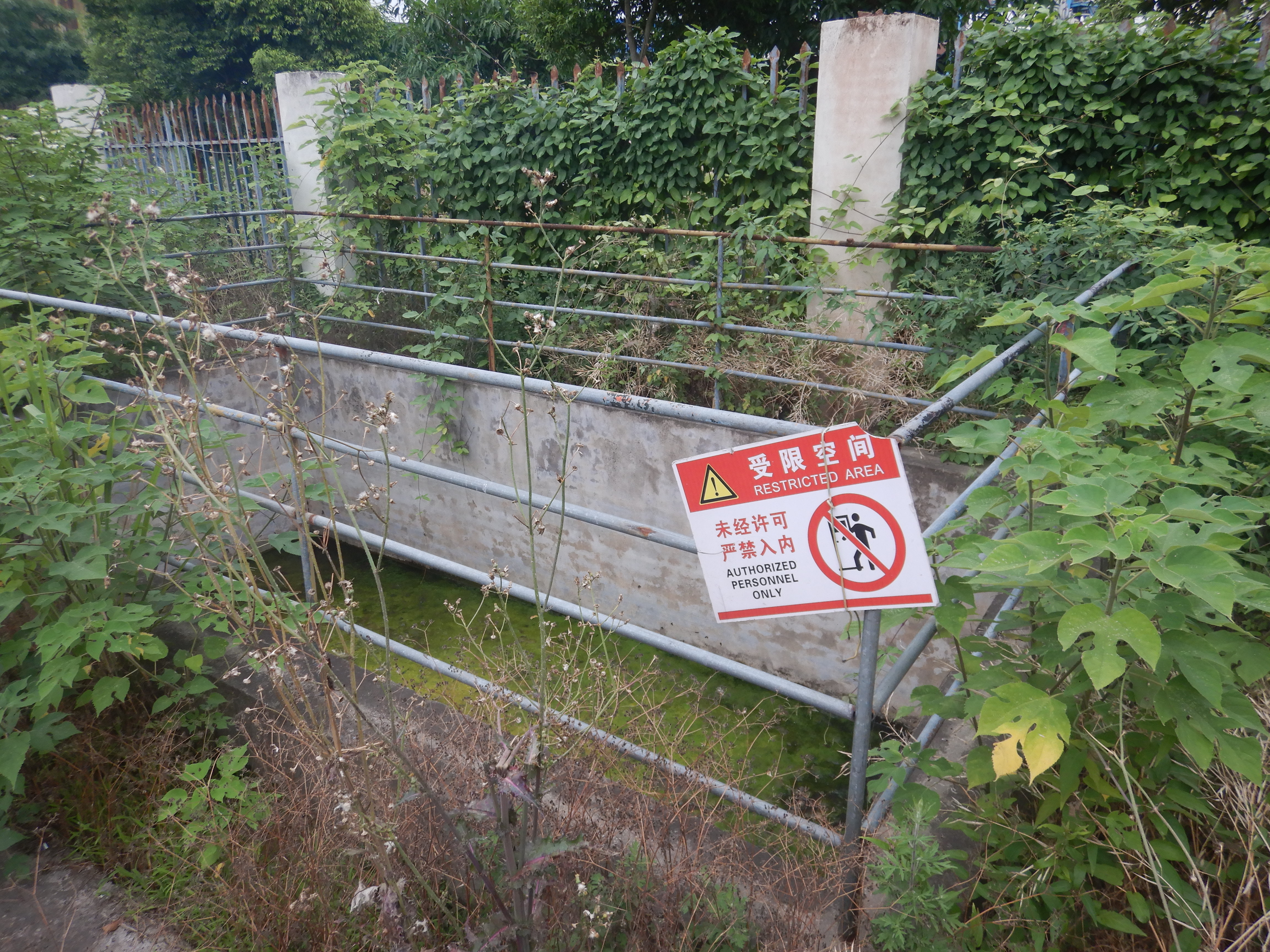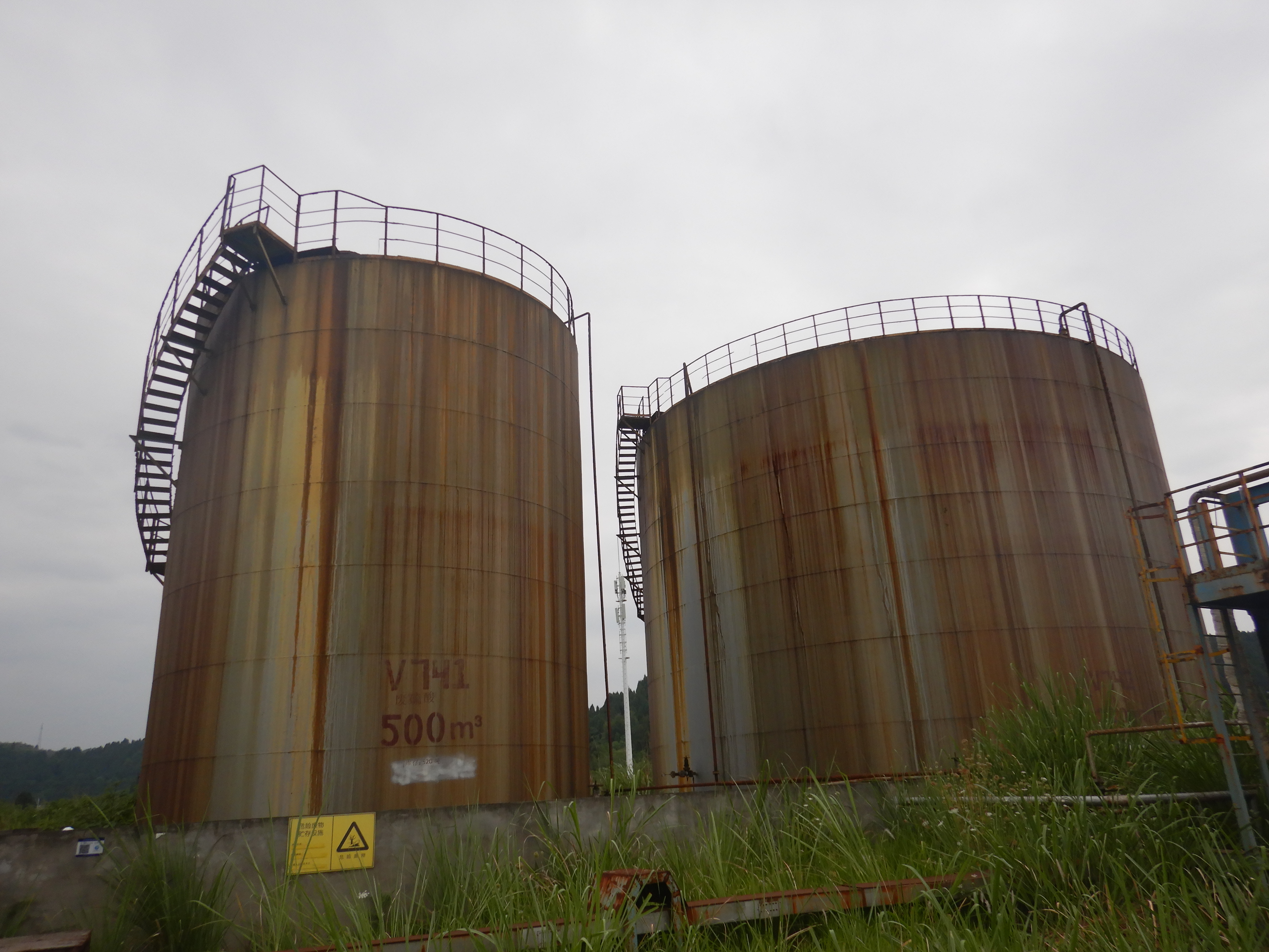 隐患四:撬装加油机应急池受限空间标识破损;废酸装置停用标识模糊。