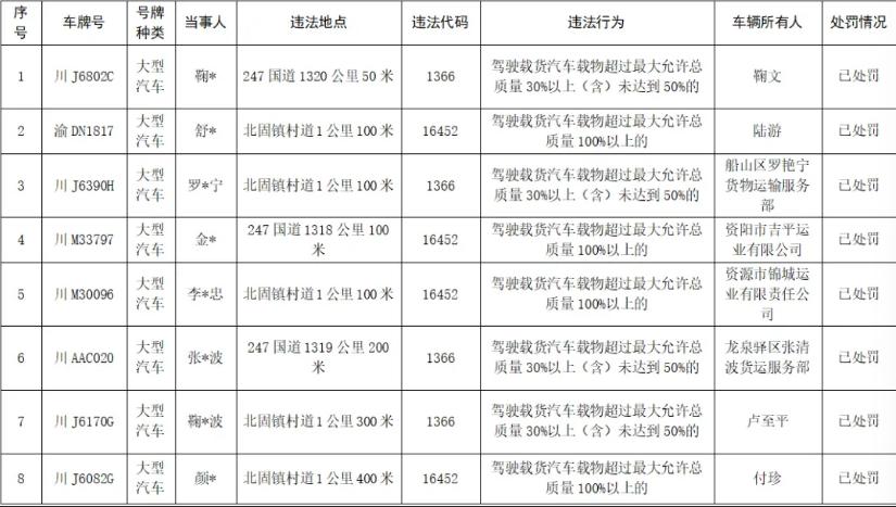 违法车牌号码:川G6***