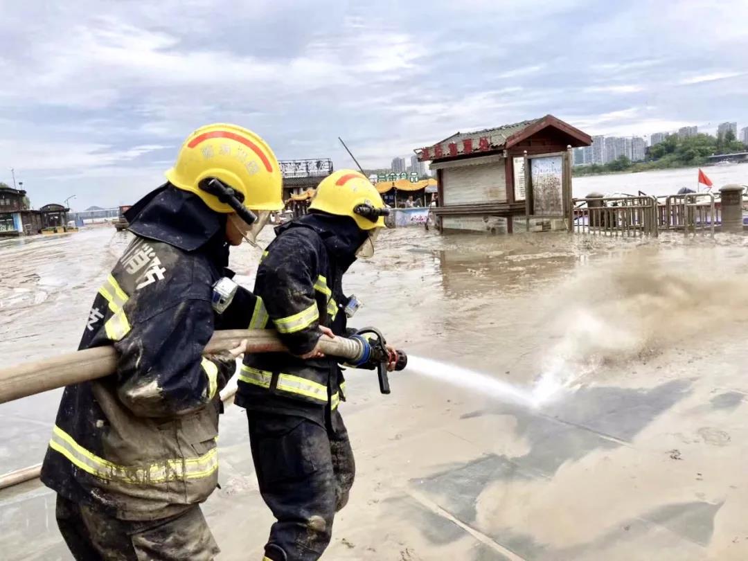 受洪水影响,遂宁市城区湿地公园、码头、圣莲岛等地受灾严重,为帮助受灾群众尽快恢复生产,按照政府统一安排部署,遂宁船山消防积极投入灾后重建工作中,开展清淤工作。