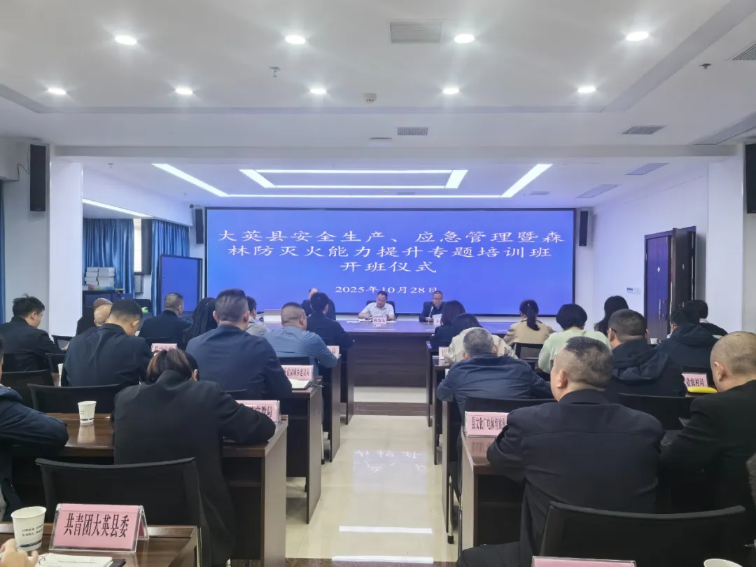 为全面提升县域安全监管质效与应急处置实战能力,切实织密筑牢全县安全防护网,10月28日至30日,大英县举办2025年安全生产、应急管理暨森林防灭火能力提升专题培训班。全县重点安委会成员单位、镇(街道)、园区主要负责人、分管负责人及业务骨干共计130余人参加培训。