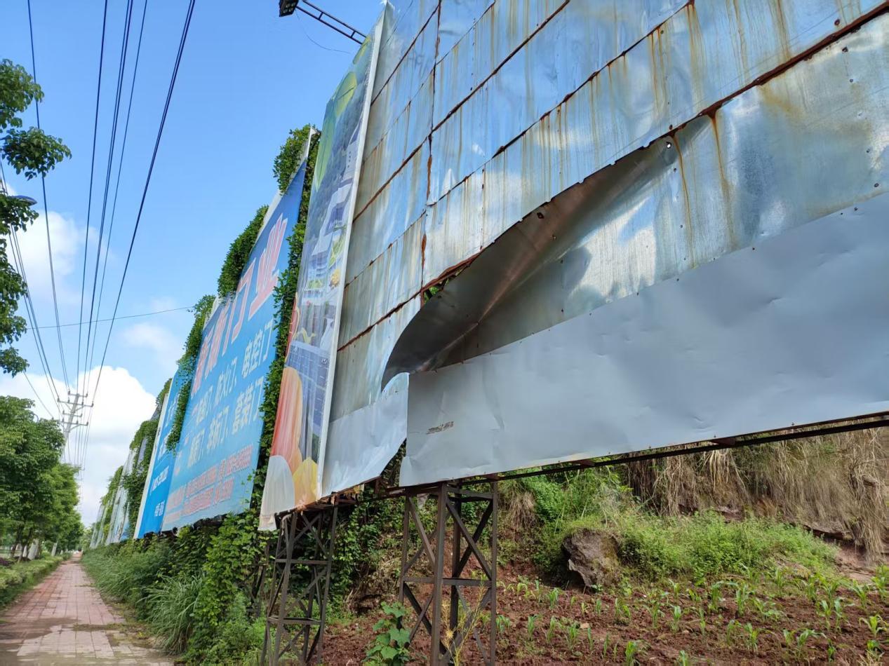 隐患:木质广告牌腐烂变形,无业主维护,易出现坍塌脱落风险。