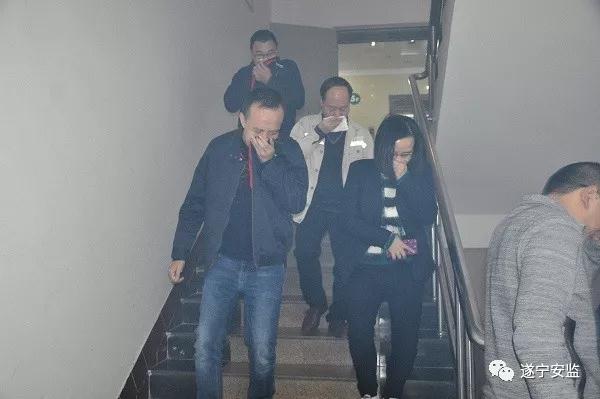 “呜!呜!呜!”,11月9日9时27分,一阵密集的警铃突然打破办公大楼的宁静,国网射洪县公司“11.9”消防应急疏散演练活动在大家毫无准备的情况下迅速展开。听到警铃声后,射洪公司消防监控中心值班人员迅速检查火灾报警监控系统,确定办公楼三楼某处发生火情,第一时间向公司应急指挥部和消防队报告,应急指挥部接到报警后立即启动应急疏散预案,灭火组、疏散引导组、后援组等各职能小组人员快速到位,开展初期火灾扑救,并迅速组织各楼办公室人员疏散,快速有序的从办公楼撤离到安全场地集结。从火灾报警、人员全部撤离,到火情得到有效控制,整个过程历时5分多钟。