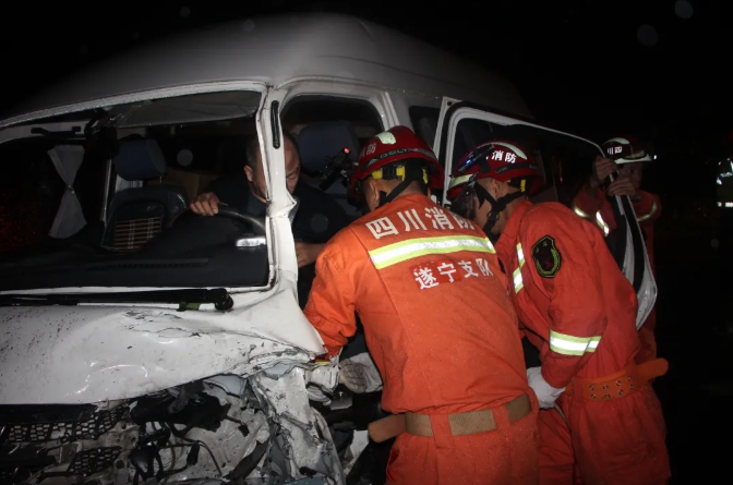 7月22日1时59分,遂宁市消防救援支队文体路消防救援站接到指挥中心转警称:成南高速遂宁往大英方向过隆盛收费站一公里处发生一起车祸,有人被困。接警后,文体路消防救援站立即出动1车6人赶赴现场处置。